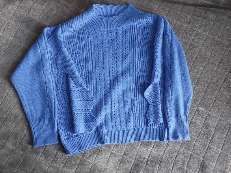 Свитер голубого цвета размера М с изюминкой дизайна, качественная погремушка. Стан нового