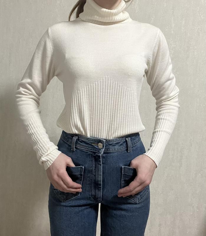 Легкий свитер под горло. Бело-молочного цвета. Подойдет на XS-M