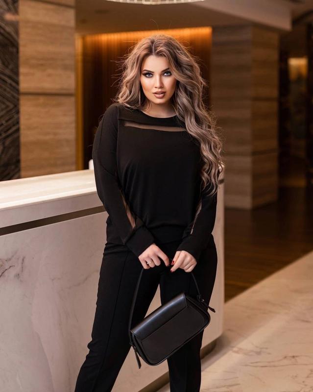 Кофта 00191 Тканина креп дайвінг, обробка євро сітка Колір чорний,пудра, електрик Розмір 48-50,52-54,56-58,60-62 Ціна 820грн На моделі розмір 48-50