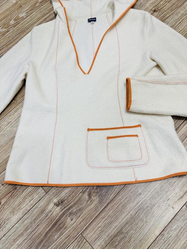 Кофточка в идеальном состоянии. Крой свободный, с капюшоном, интересный дизайн с карманчиками. Длина 58см ПОТ 49см Рукав 60см Плечи 42см