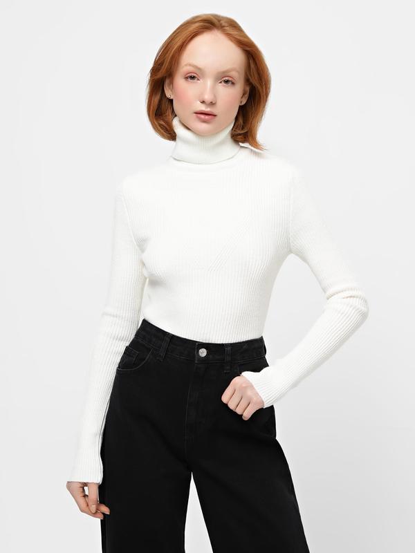 Уютный трикотажный свитер с классическим полуприлегающим силуэтом – идеальный выбор для зимнего комфорта. Полка свитера украшена структурным геометрическим плетением, что создает интересный и модный акцент. Высокая горловина добавляет дополнительной защитной функции от холода, а в составе присутствует шерсть, что гарантирует вам тепло и приятный контакт с кожей. Размер: 42-44, 46-48 Цвета: коричневый, кемэл, белый, черный Материал: 60% акрил, 30% шерсть, 10% эластан