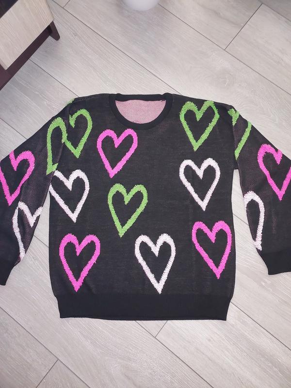 Тепленький. Качественный. Надевала 1 раз. Сд сердечка, как вышитые. Замеры на фото