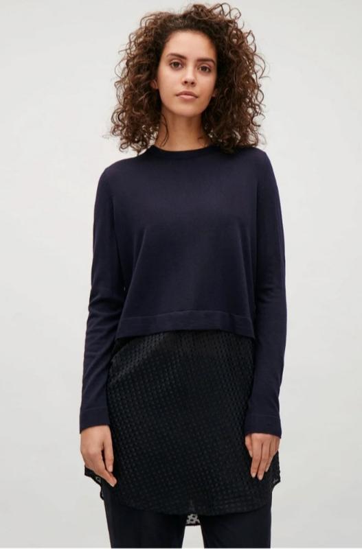 🌿темно синее платье-туника бренда COS свободного кроя, выполненное из шерсти и шелка Размер:L Замеры:ПО груди 55 см, длина 92 см, рукав от горловины 73 см