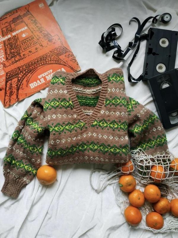 Вʼязаний светрик ручної роботи 🪄 Тепленький та дуже атмосферний, у затишних кольорах. Розмір: s-m Довжина: 69 см Півобхват грудей: 54 см Рукав від горловини: 75 см