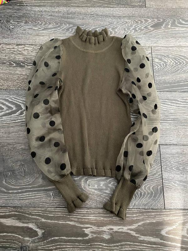 Drole de copine Paris Супер стильная кофта с прозрачными крутыми рукавами в горох. Стан идеален. Цвет равномерный насыщенный-тяжело на фото передать. Размер С-М Тягнется добре