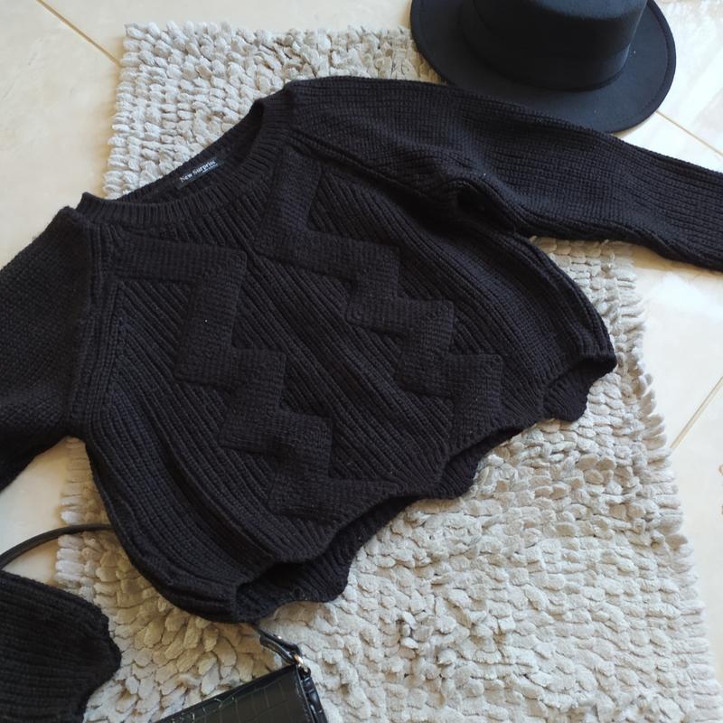 укороченный черный вязаный свитерик, состояние нового. замеры длина 43,ширина 45,рукав от шеи 61 см