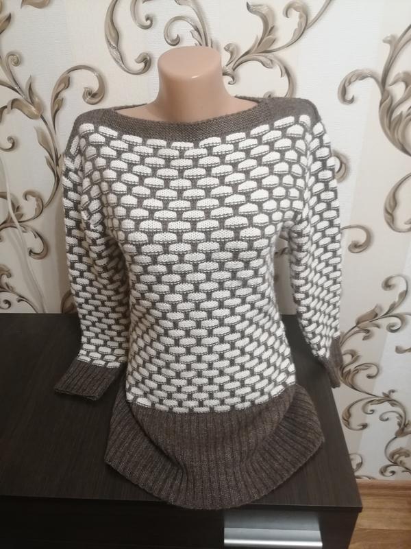 теплый вязаный свитер, очень красивый. Длина - 72 см, рукав - 53 см, плечи - 41 см. В идеальном состоянии.