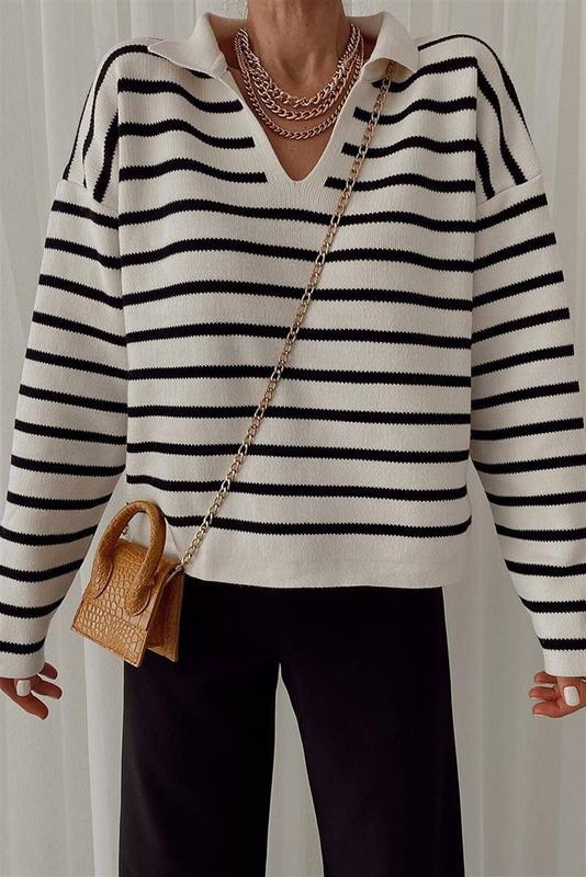 🔝В НАЛИЧИИ🔝 Кофта «Поло» в смужку Модель 088 Материал: машинная вязка Размер единственный Производитель Турция ✅Только ТОП КАЧЕСТВО✅ #кофта #топ #кофта #топ #brand_521