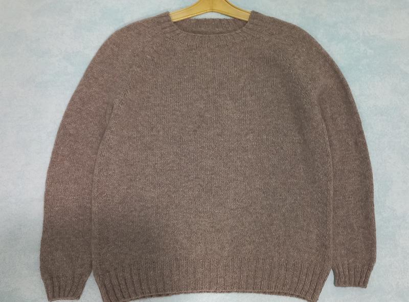 В наличии женский пуловер из натуральной мериносовой шерсти. По бокам и на плечах расположены декоративные дорожки. Цвет: кофе с мололком. Размер 42 - 44.