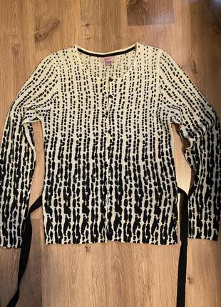 Тонка вовняна/ ангорова та приємна до тіла. Тепла. З поясом. Дуже гарно по фігурі за рахунок малюнку. Заміри: Плечі- 35 см. ПОГ- 43 см Довжина рукава 66 см Довжина 63 см. ПОТ-41 Низ-40 Стан гарний.