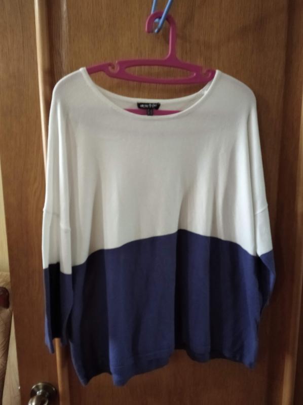 Свитер (блузон) женский В идеальном состоянии Белый верх, серо-синий низ Мягкий, приятный к телу Длина 60 Полуобхват груди 60 Полуобхват бедер 65 Рукав 3/4 Длина рукава (от горловины) 58 Любимые красавицы, покупая две вещи, получаете скидку 10%!