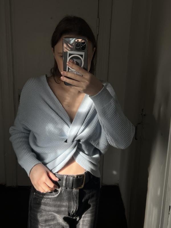 Нежно голубой свитер с переплетенным передом