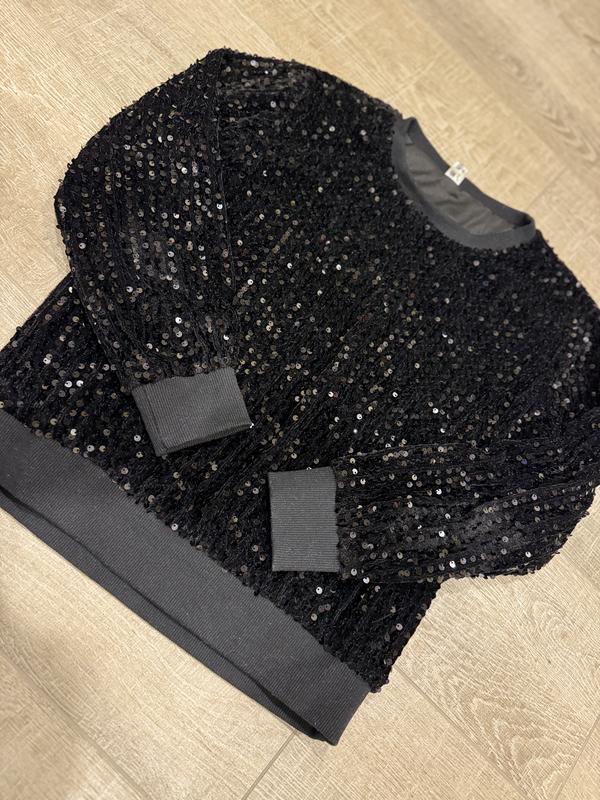 Светр в паєтках в ідеальному стані, одягався 2 рази, без ньюансів, на підкладці, резинки не розтягнуті