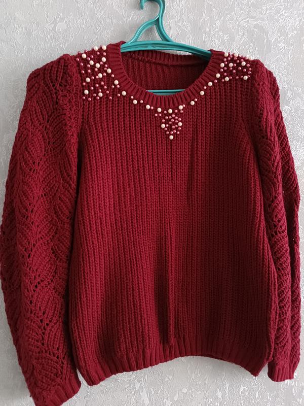 Красивая, теплая кофта бордового цвета, размер фактически L/XL, не кашлатится.