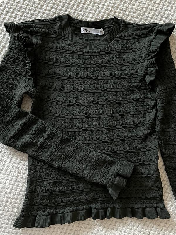 Ажурний трикотажний светр ZARA Мереживні волани на рукавах Розмір S