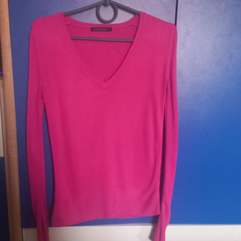 кофта малинового цвета идеально подойдет к джинсам, брюкам или юбке