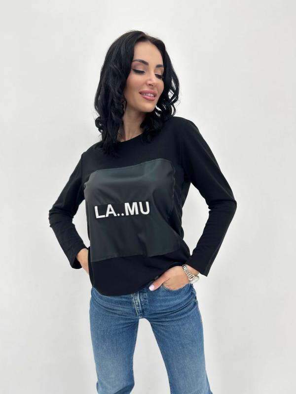 💫Комфортная модель с стильной нашивкой Ткань: трикотаж, экокожа Размер: 42-44, 46-48, 50-52 Цвет: черный