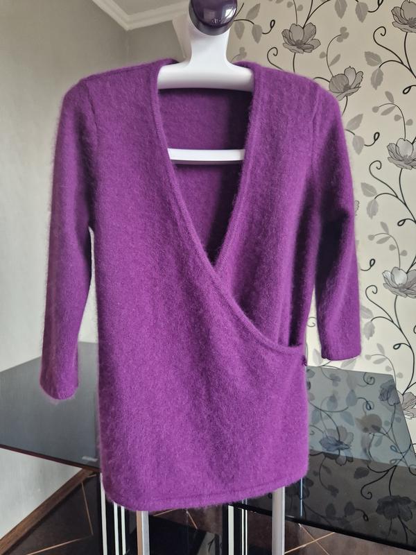 Мя'ка, ніжна, пухнаста кофта з ангори неймовірно красивого фіолетового відтінку (фото не передає реального відтінку, в житті краща, ніж на фото). Стан нової речі. Можна одягати в двох варіантах: у вільному та з паском. Пог-48см, пот-43см, рукав-46см, низ-49см, довжина-68см, плечі-39см.