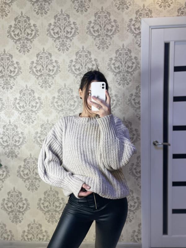Вязаный свитер, очень теплый, стильный, размер с/м) красивая вязка😍