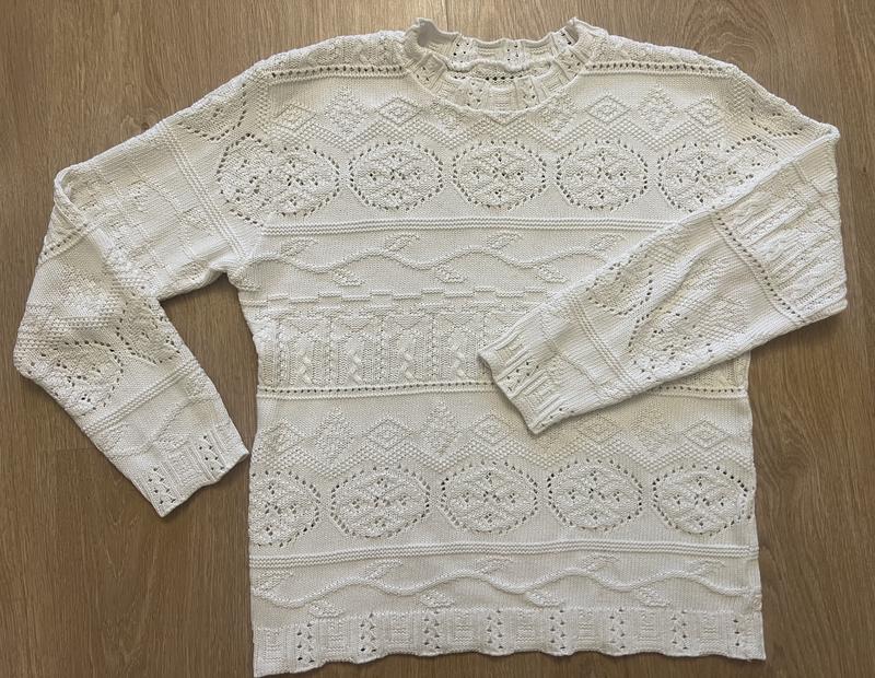 Белоснежная кофточка, идеальный вариант на весну. Недостатков нет. Бирки срезанные, размер С-M
