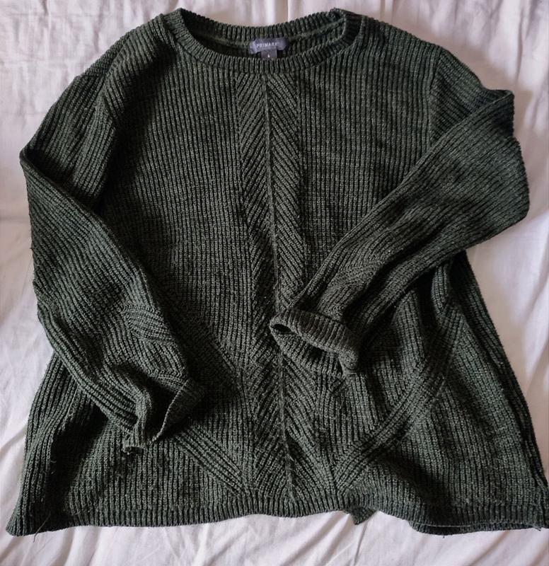 свечер от PRIMARK, с открытой спинкой, в темно-зеленом цвете💚 Размер указан L, но можно на М (46-48). Свободного кроя, по спинке регулируется 🙂 Состояние красивое☺