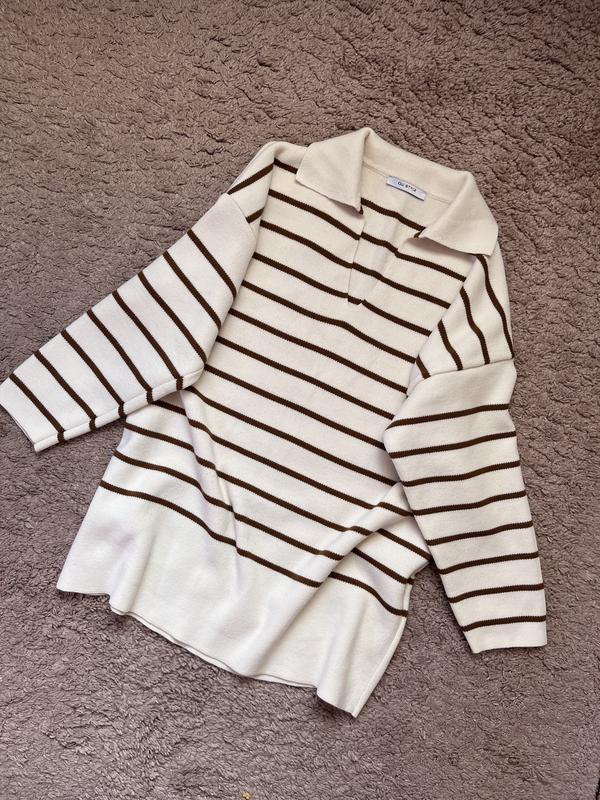 Оверсайз светр QU STYLE в коричневу полоску длина - 72 см плечи - 63,5 см рукав - 41 см пог - 61 см