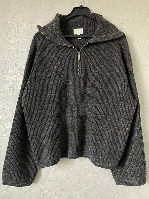 Базовий светр від H&M 🤍 Завжди актуальний та дуже стильний. Замочок на горлі можна застібнути. Дуже приємний до тіла, тягнеться, зручний та теплий! Має шерсть в складі. Розмір - Л Заміри пог-66 см пот-63 см довжина - 55 см довжина рукава- 55 см