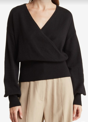 состояние идеальное/нового стильная теплая база невесомый, нежный на ощупь, основа состава район-это искусственная ткань, которая изготавливается из натурального сырья, бывает очень разнообразна, имитирует натуральные ткани - шелк, хлопок, лен и даже тонкую шерсть (кашемир!) снаружи район обладает также отличными свойствами натуральных полотен – он прочный, гигроскопичный и приятный на ощупь злегка укорочена модель высокая резинка, легкое великолепие рукавчика, линия плеча спущена длина 58, рукавчик от плечевого шва 50, ширина под проймами рукавов 55
