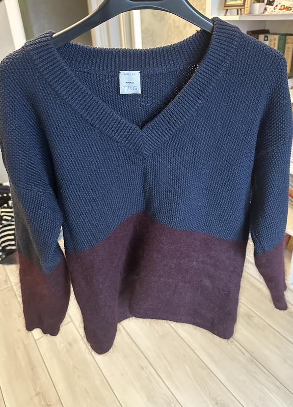 Неймовірно стильний та теплий светр від відомого бренду Pinko. Стан чудовий! Два кольори та дві різні тканини , включаючи ангору, дають унікальний вигляд речі . По бірці розмір S , але він гарно сяде і на M.