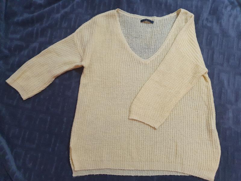 Светр Mohito розмір L,якщо потрібні заміри - пишіть.Є нюанс на фото зачіпка на тканині але візуально малопомітно