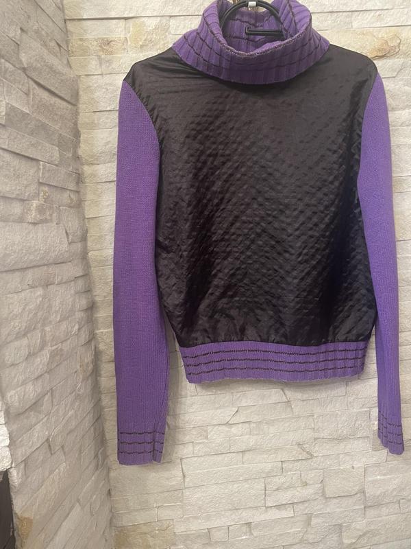 Комбинированный свитер Versace jeans couture оригинал сиренево - фиолетового цвета с коричневой тканевой вставкой спереди. Воротник и рукава отделаны тонкой люрексовой нитью. Смотрите другие мои объявления, там много красивых, качественных, фирменных практичных вещей в отличном состоянии.