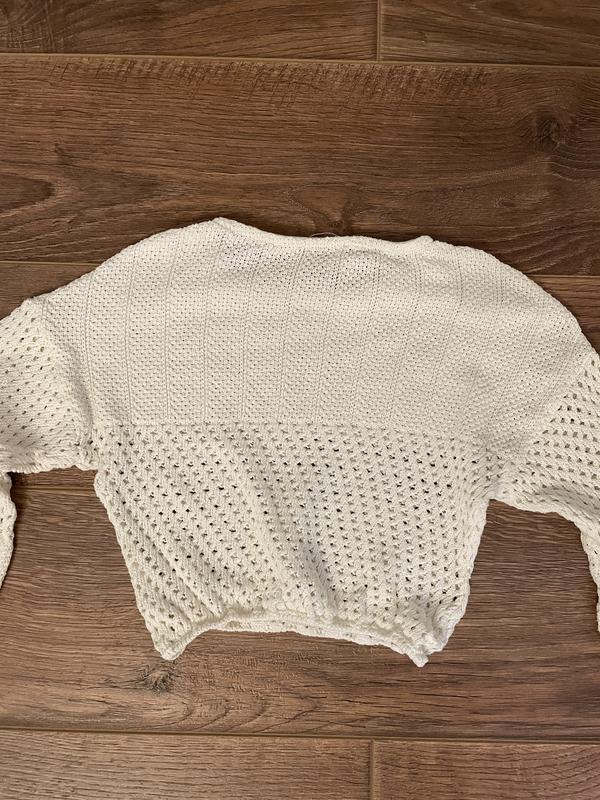 Вкорочений светр від ZARA. Розмір S. Внизу на резинці, красиві рукава, гарне плетіння.