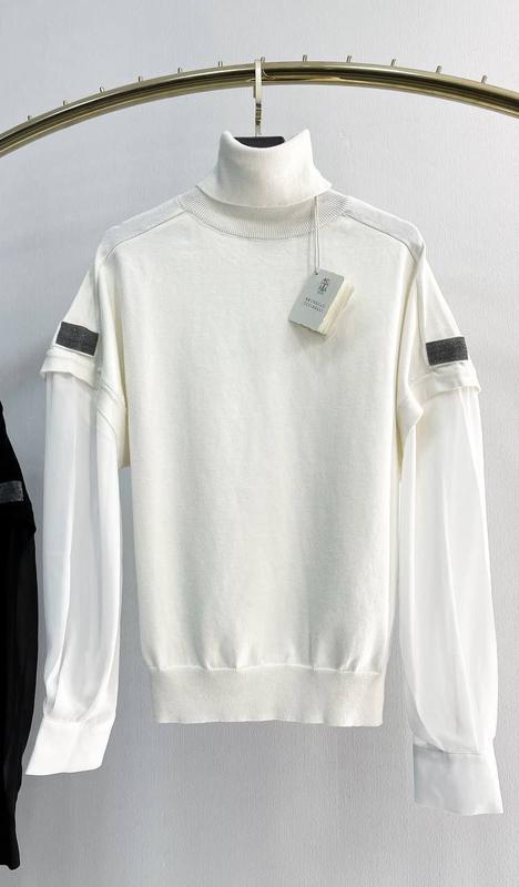 NEW COLLECTION’24 Brunello Cucinelli High Quality Комбинированная модель из высококачественных материалов 🔝 Кашемир с шифоном 😍😍😍 • состав: 60% кашемир, 30% шерсть, 10% полиамид • все фирменные бирки 🏷️ • фирменный декор • ругав реглан Два цвета: молочный и чёрный В размерах: S M L XL полномерная модель