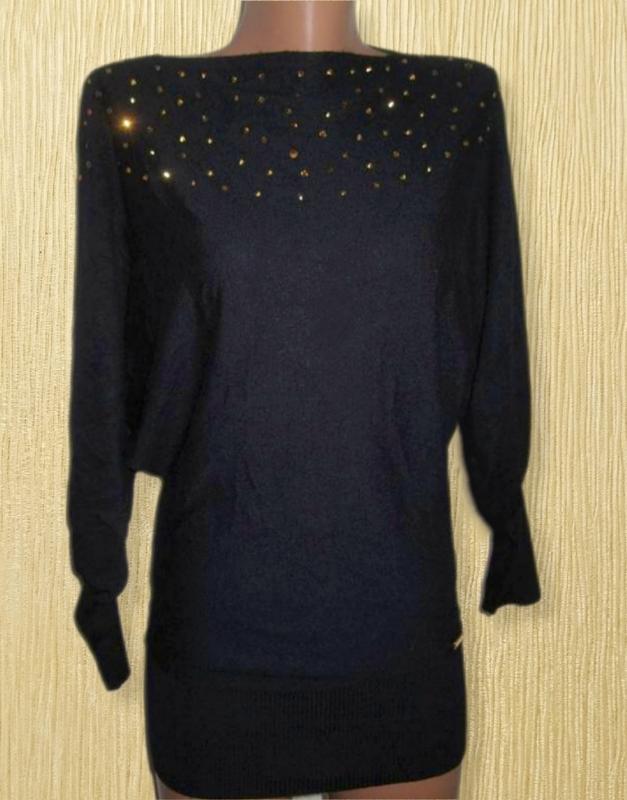 ‼️100% оплата на карту Приватбанку‼️ Свитер невероятный на ощупь из нежной вискозы Рукав летучая мышь 🦇, вырез лодочка 🚤 Цвет: насыщенный черный, украшенный камушками и мелким металлическим декором Размер: р. 14 (евро 42) - S/M/L ✓ рукав от горловины (плечевого шва нет): 66 см; ✓ ПОГ: 50см; ✓ длина по спинке: 75см; ✓ ширина в районе талии: 41см; ✓ ширина по резиночці: 28см. Мягкая ткань, хорошо тянется. Состав: 35% модал, 35% вискоза, 30% полиамид Состояние: идеальный Приятного шоппинга 🛍️ Есть вопрос - задавайте! С радостью ответим и дам всю необходимую дополнительную информацию и фото! ‼️Возвращение нет!