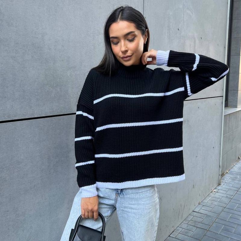 Светр у смужку 😍 Модель: 115 Розмір: oversize 42/46 Акрил+вовна Заміри: Н/ог -53 см Довжина по спинці: 58 см Довжина рукава ( від шва): 49 см нова Ціна 395 грн 4 шт код20-1755(ТОсі)