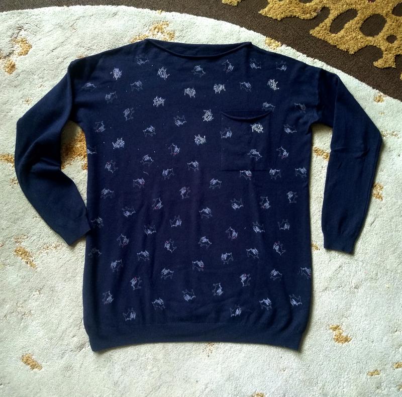 Приятный к телу, красиво смотрится. Очень удобный. Замеры: длина 71, пог 58, плечи спущенные 60, рукав 48.