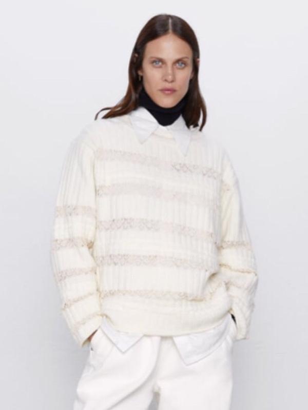 Красивый свитер Zara Изысканные вставки из кружева Свободный крой Размер на бирке М Пог 57 см Длина 61 см Рукав 70 см от горловины Плечи 57 см В составе коттон, полиамид, эластан