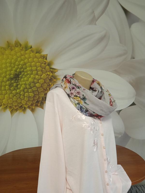 Классическая однотонная кофтонка с длинным рукавом светлого розового цвета. Легкая и комфортная. Приятная и мягкая на ощупь. Гладкая машинная вязка. Нить средней толщины. Стрейч. Украшена вышивкой. На гудзичках. Фасон прямой. Ложится по фигуре. Аккуратный вырез Красиво смотрится с шарфом в тон в комплекте (шарф может быть заменен, но в цвете). Есть размеры. 58р на пог-62-64 56р на пог-60-62 54р на пог-58-60.