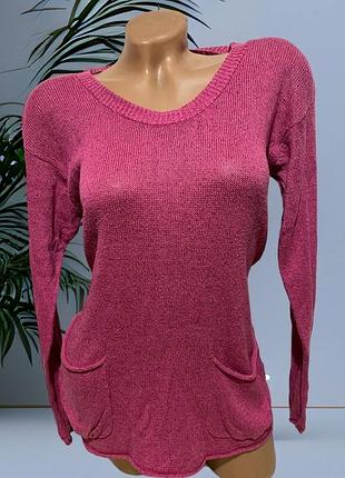Женский свитер с карманами нетолстый, весенний Размер - написано L Ширина (по груди) - 48- 62см Ширина (по талии ) - см Ширина (по бедрам) -54-67 см Длина - 70см Рукав - 58см Состав: 55% - лен, 24% - коттон, 21% - вискоза