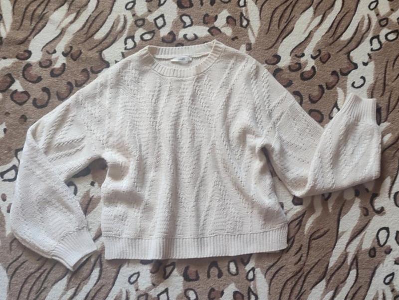 Фірмовий светр,стан нового, одягався один раз. Пошив вільного крою. Не грубий,не товстий ,дуже приємний на дотик. Ног-54,5см. Довжина рукава від горловини,так як трішки приопущений -73см.(об'ємний) Довжина светра-51см.