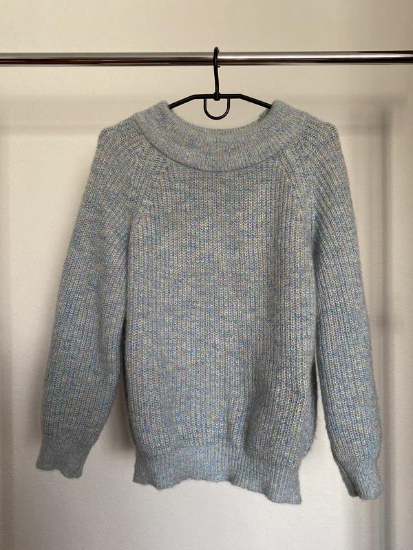 Вязаный свитер приятного цвета с широкой горловиной в хорошем состоянии.