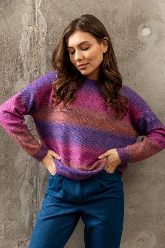 Материал - в'язка 30% ангора, 30% вовна, 20 котон, 20% акрил Колір - бузковий Сезон - демісезон, весна, осінь Конструктивні елементи - спущене плече Догляд за одягом ручне прання до 30° Довжина виробу S-XL= 67 см Довжина рукава S-XL= 62 см