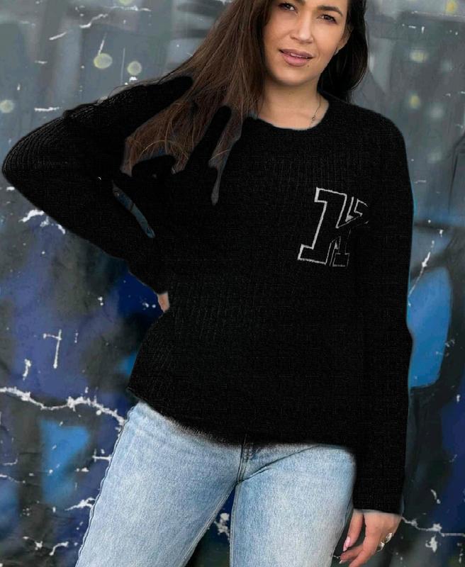 ЖІНОЧИЙ СВЕТР Артикул: 9777 ✨Светр вільної моделі, доповнений принтом на грудях. Добре тягнеться. ✂️Матеріал : в’язка. 🌟Гарної якості. 🇨🇳Країна виробник: Китай 🇨🇳 *🏷 Розміри: універсальний 42-48*