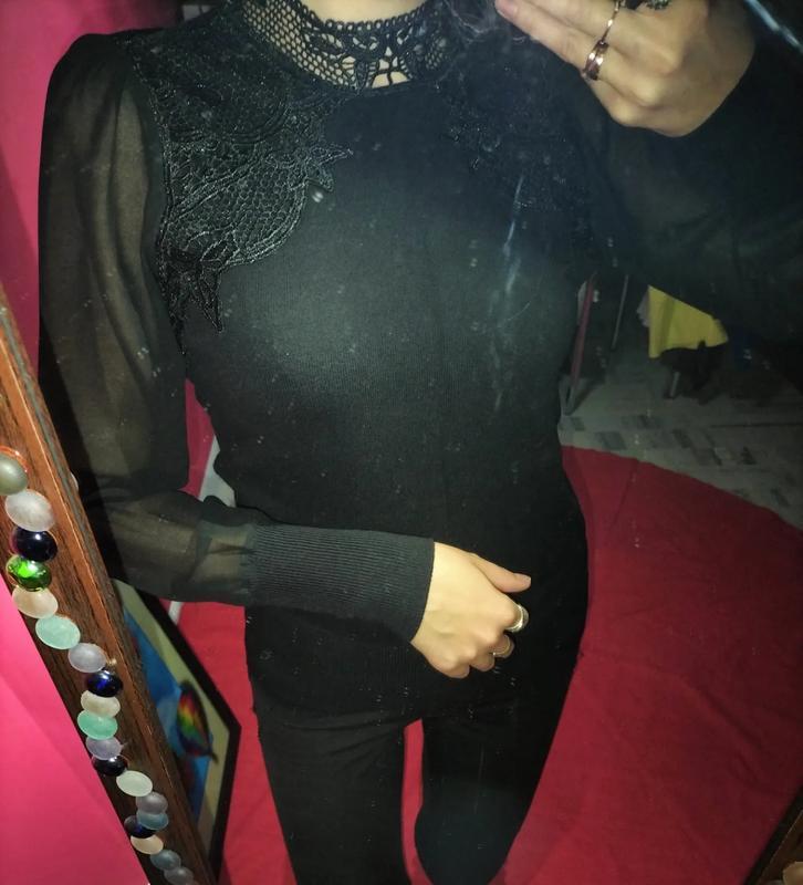 Тип одягу: Светри ✔️ Жіноча Кофтина з напівпрозорими рукавами OASIS ✓колір - чорний 🖤 ✓розмір - XS ОГ 80 Ознизу 56-72 Довжина 58 Довжина рукава 60📏