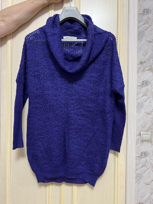 Свитер свободного фасона поэтому подойдет на размер с и м. Недостатков нет, состояние идеально.
