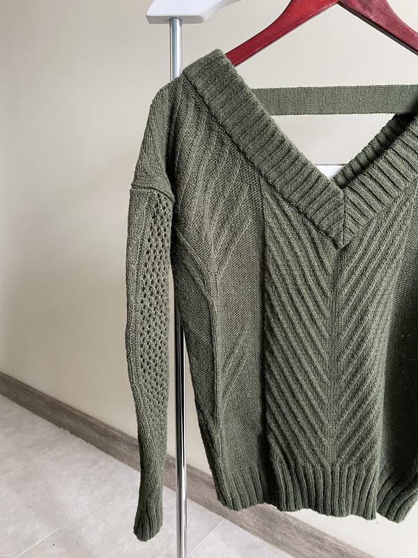 Свитер в цвете хаки, мягко спустить плечи, сзади сеточка Длина 57 Ширина 49 Рукав 47 от шва (подмышка)