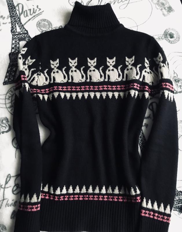 Милый свитер с горловиной. Красивое сочетание. Коты немного ворсистые. Состояние идеальное без следов носки. Плечи 40 под руками 45 длина рукава 65 длина 63