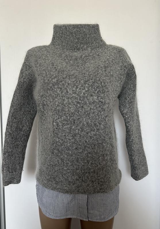 Красивый шерстяной свитер от H&M с эффектом рубашки Фасон водолазка с имитацией рубашки под ним/ Бирка с составом повреждена на ощупь шерсть возможно с вкраплениями коттона/ Длина 54-67 см/ Плечи 48-50 см/ Рукав 48 см/ Пог 54 см/ Пот 49 см/ Снизу 49 см Подойдет на см европейский ориентируйтесь по замерам/ Продается без возврата. Детали уточняете, чтобы потом не было недопонимания
