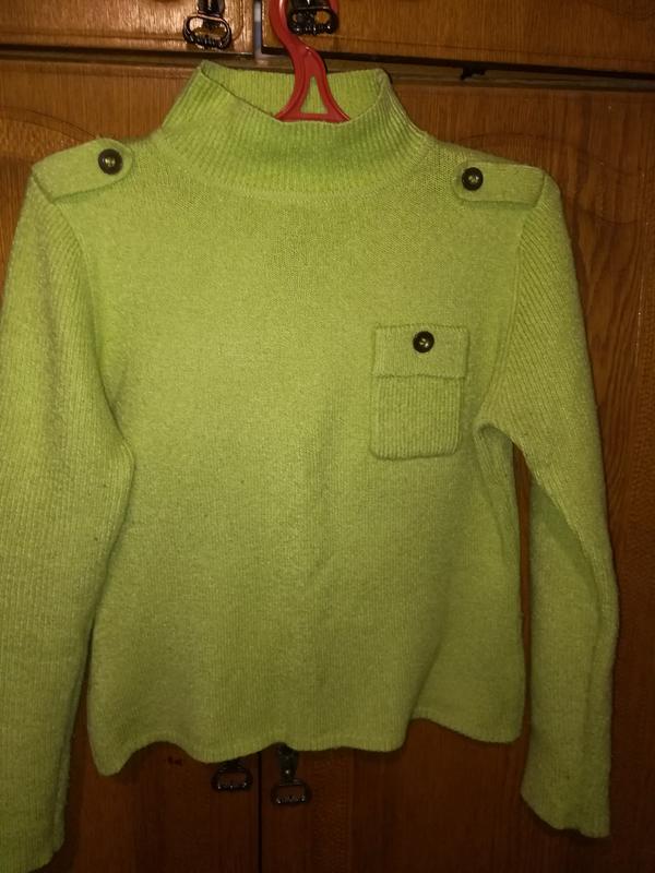Свитер салатовий ,удобный в носке,с пагончиками впереди карманчик.