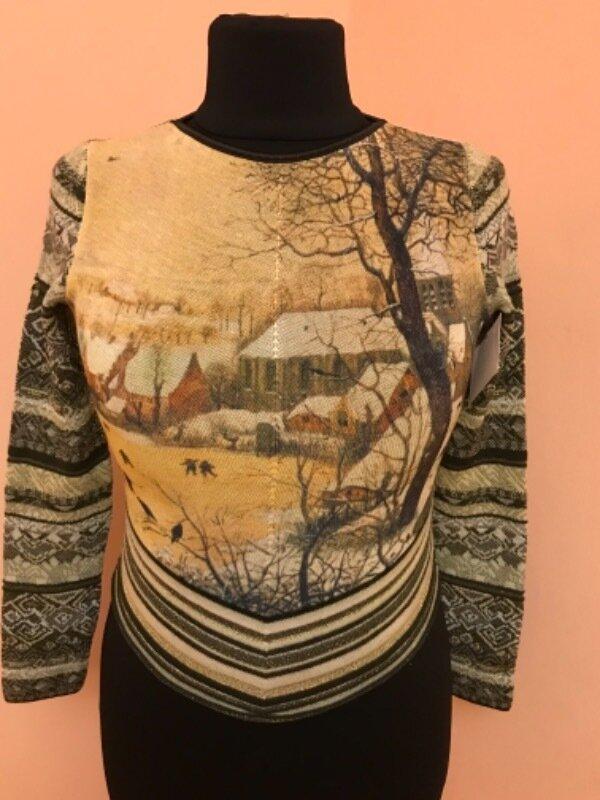 Тип одягу: Светри Класна і дуже дорога річ прислана з Європи, розмір С , та демонстровано на манекені 52 розміру. Довжина- 48см збоку і 53см перед і зад, рукав від плеча-62см, пог- 50см, півоб‘єм низу -43см.